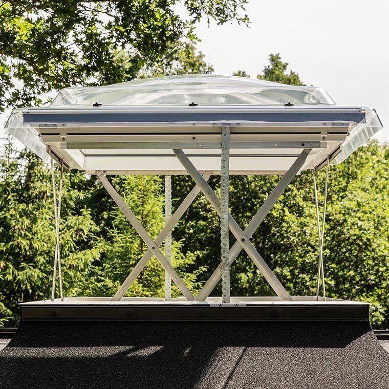 Deze manueel bediende daktoegangskoepel is speciaal ontworpen voor gebouwen met een plat dak.